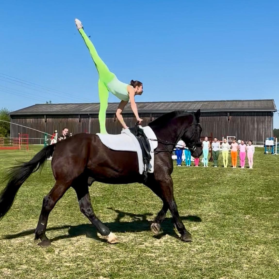 Hier liegt der Fokus auf Bewegungs-schulung, Vertrauensbildung, Umgang mit dem Pferd und den Teammitgliedern und der Freude am Turnen.